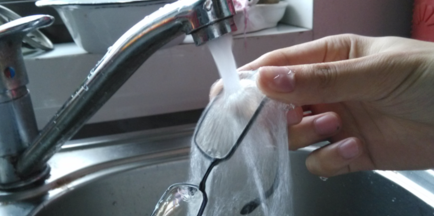 2、放在自来水下冲洗,同时用手轻微擦拭。